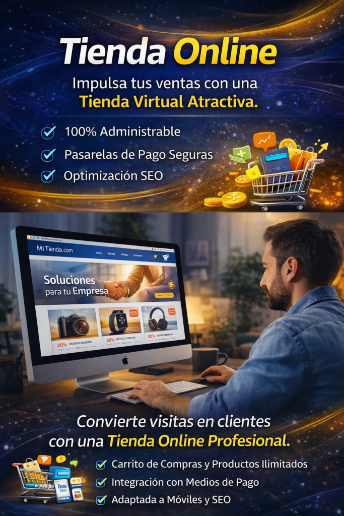 Además, tu web funciona como una vitrina digital disponible 24/7, ampliando tu alcance a otras ciudades e incluso países. Te permite mostrar productos, precios y servicios sin límites físicos, dándote mayor control de tu marca y ventaja frente a la competencia.